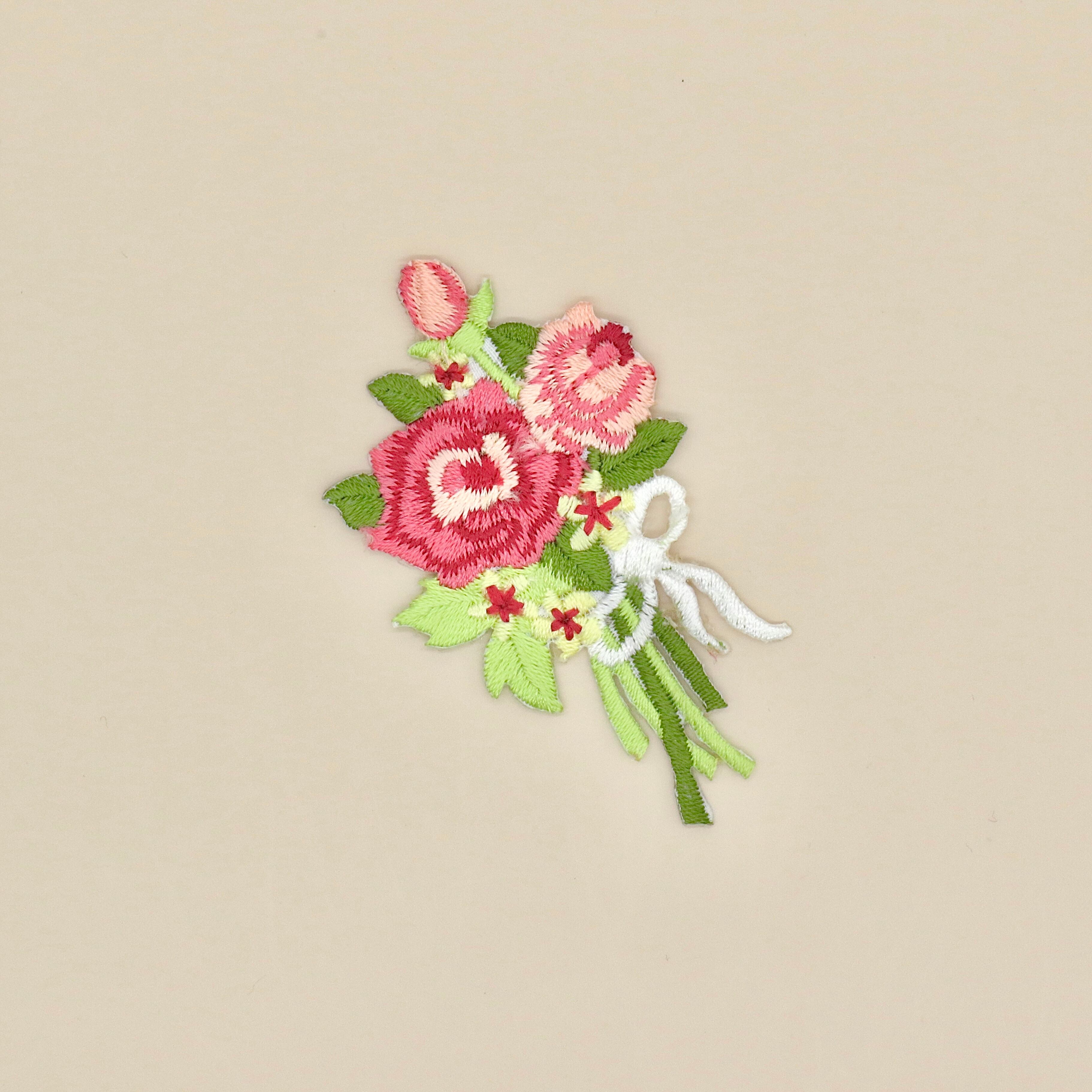 【刺繍ワッペン】 赤 バラ お花束・ブーケ ワッペン アイロン接着タイプ