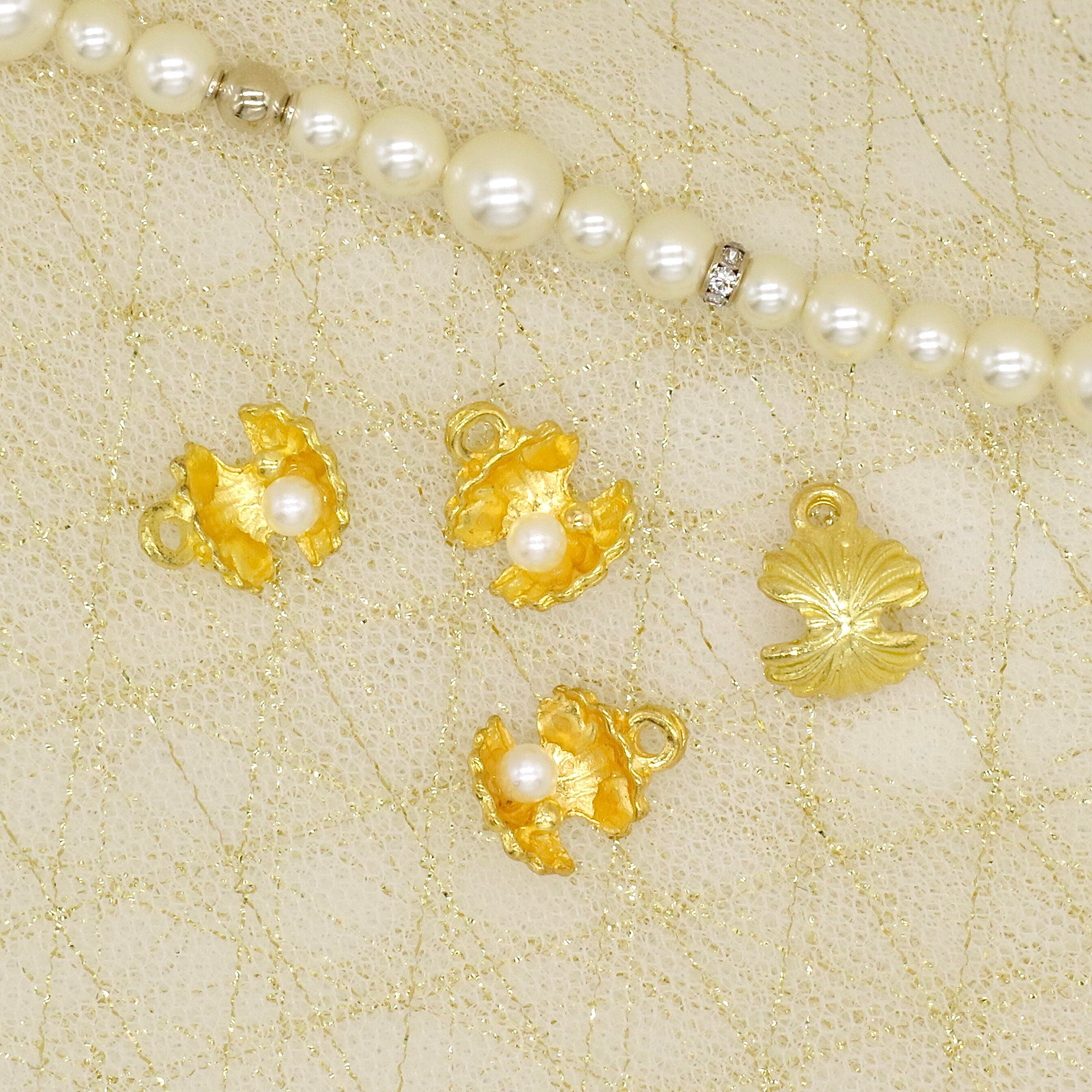 【チャーム】ゴールド パール付きシェル貝 立体 1個〜 (15mm)
