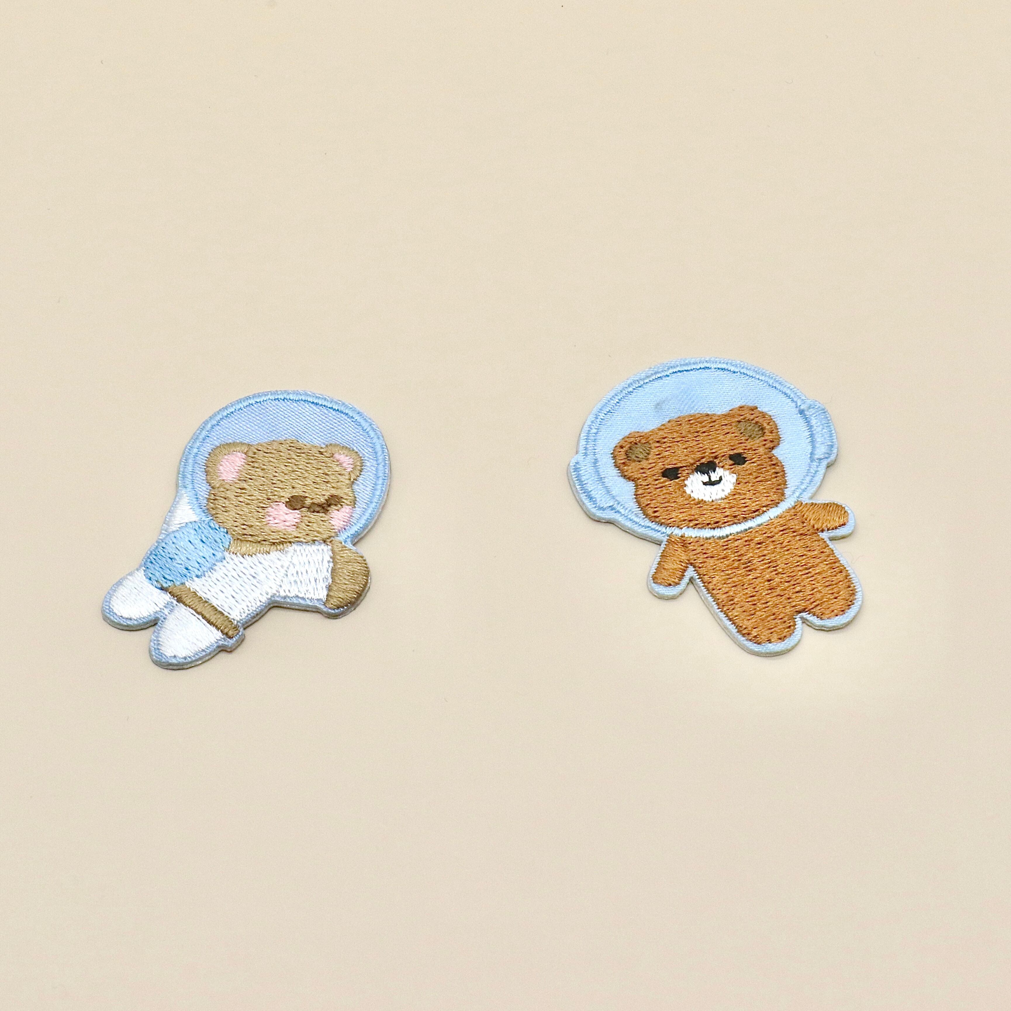 【刺繍ワッペン】 アニマル宇宙飛行士 熊 くまちゃん ファンタジー 宇宙シリーズ シールタイプ