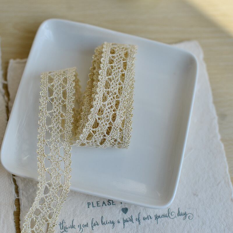 【レース】アイボリー 硬め金糸入り ケミカルレース (幅2.2cm/長さ1m〜)