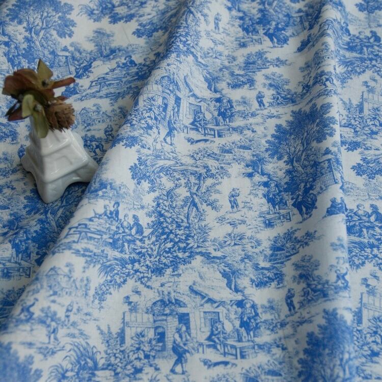 6回目再入荷しました!!【生地】100%コットン 青と白トワルドジュイ柄 アンティーク調(幅140cm・長さ50cm単位)