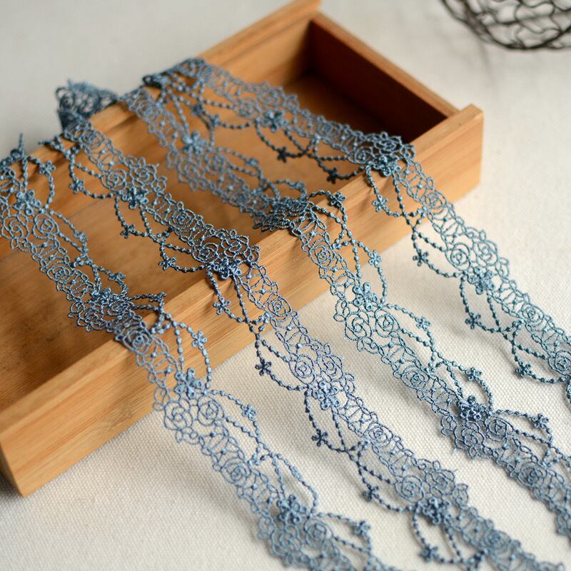 【レース】青色 ローズ刺繍 ケミカルレース (幅3cm/長さ1m〜)