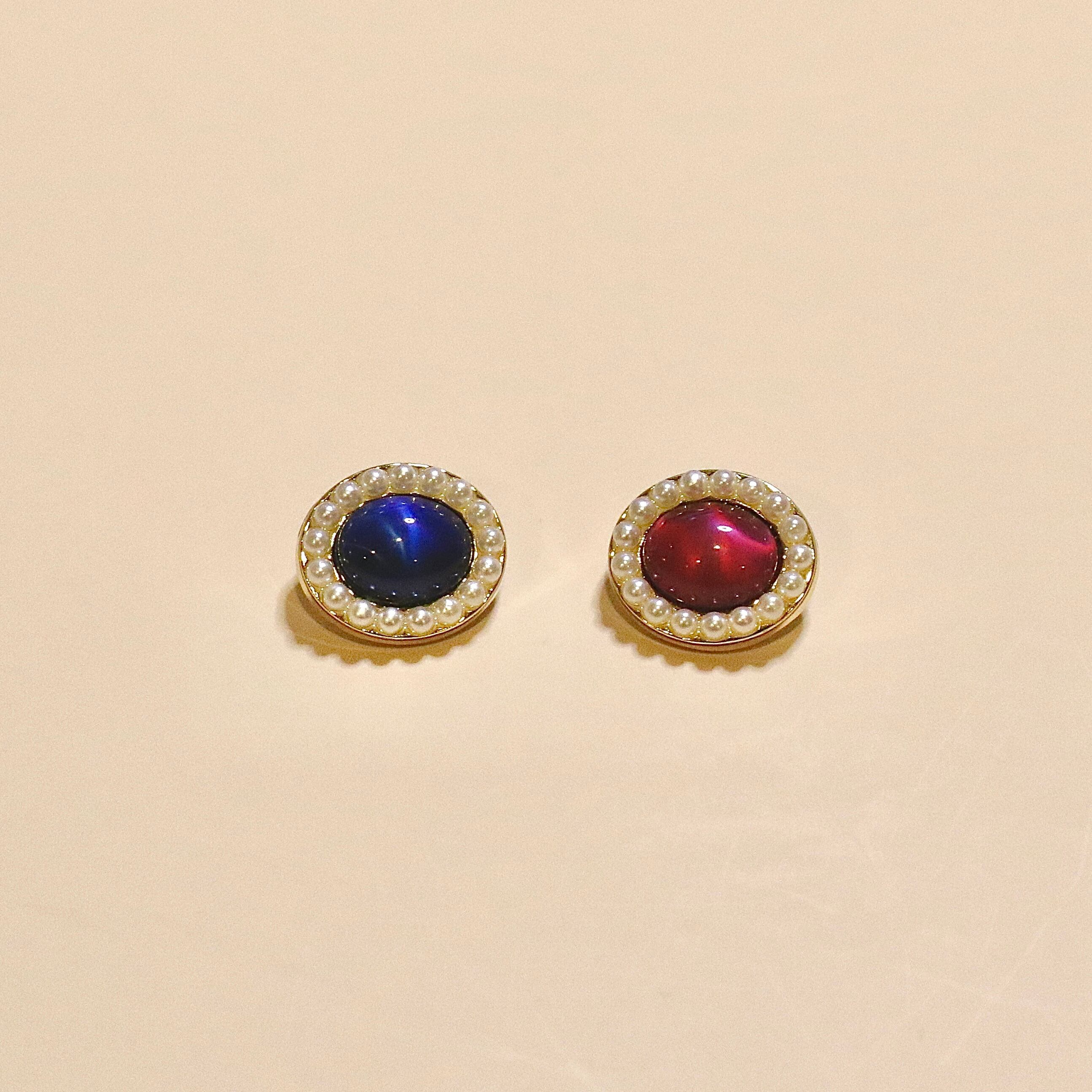 【ボタン】2色入り(紺・ワイン) パールフレーム 宝石調デザイン(15mm)