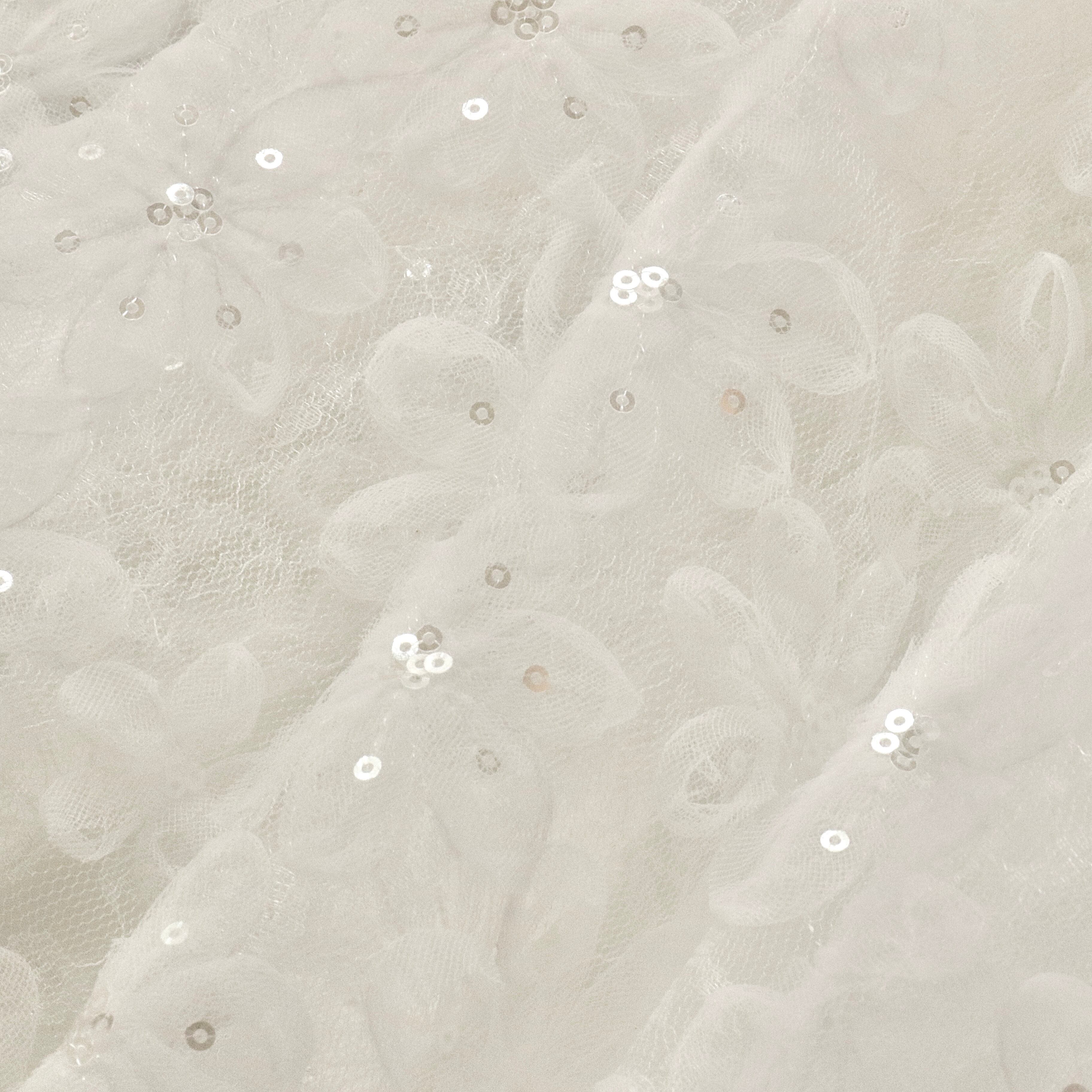【生地】お花のスパンコールのチュールレース 立体花 高級感(幅125cm・長さ50cm単位)