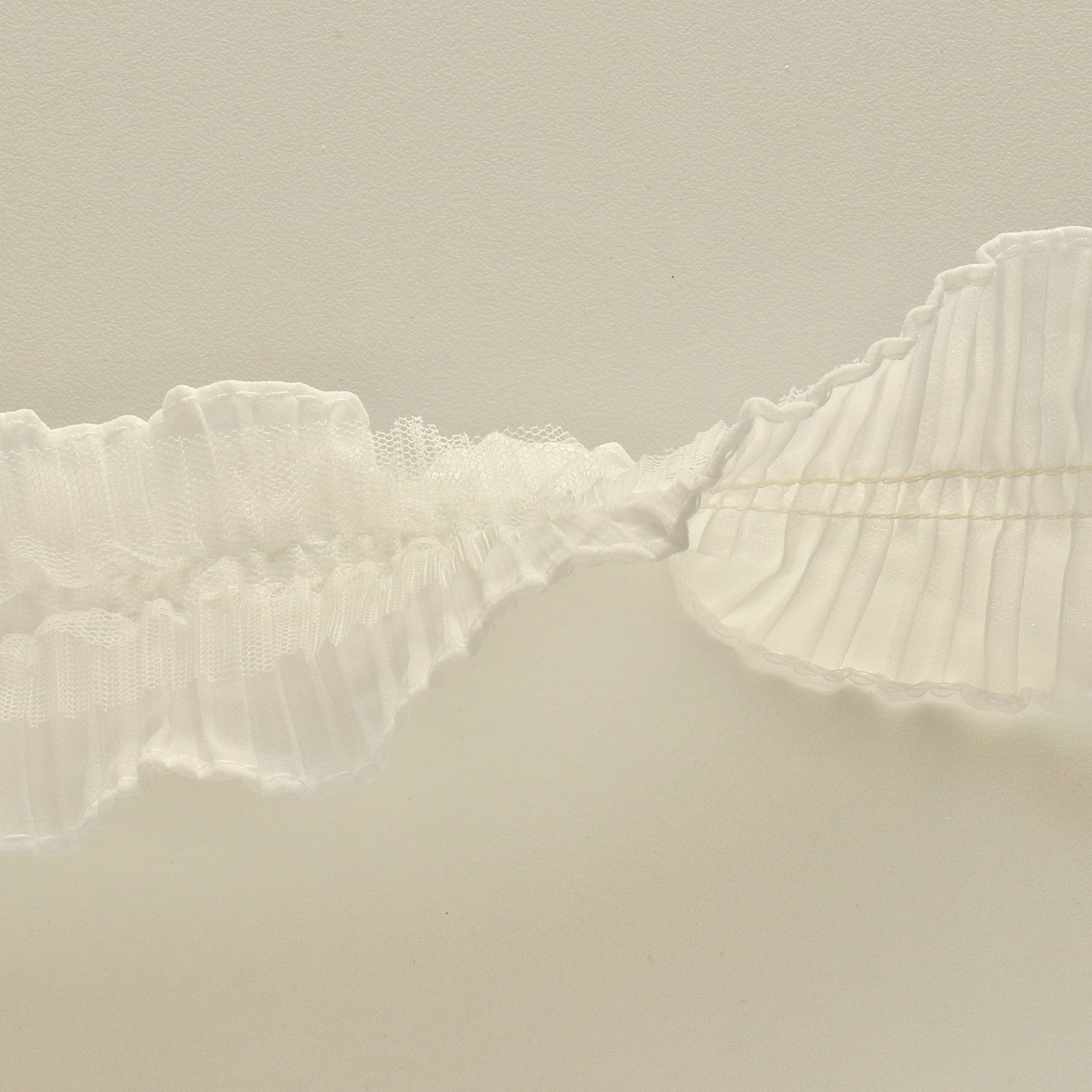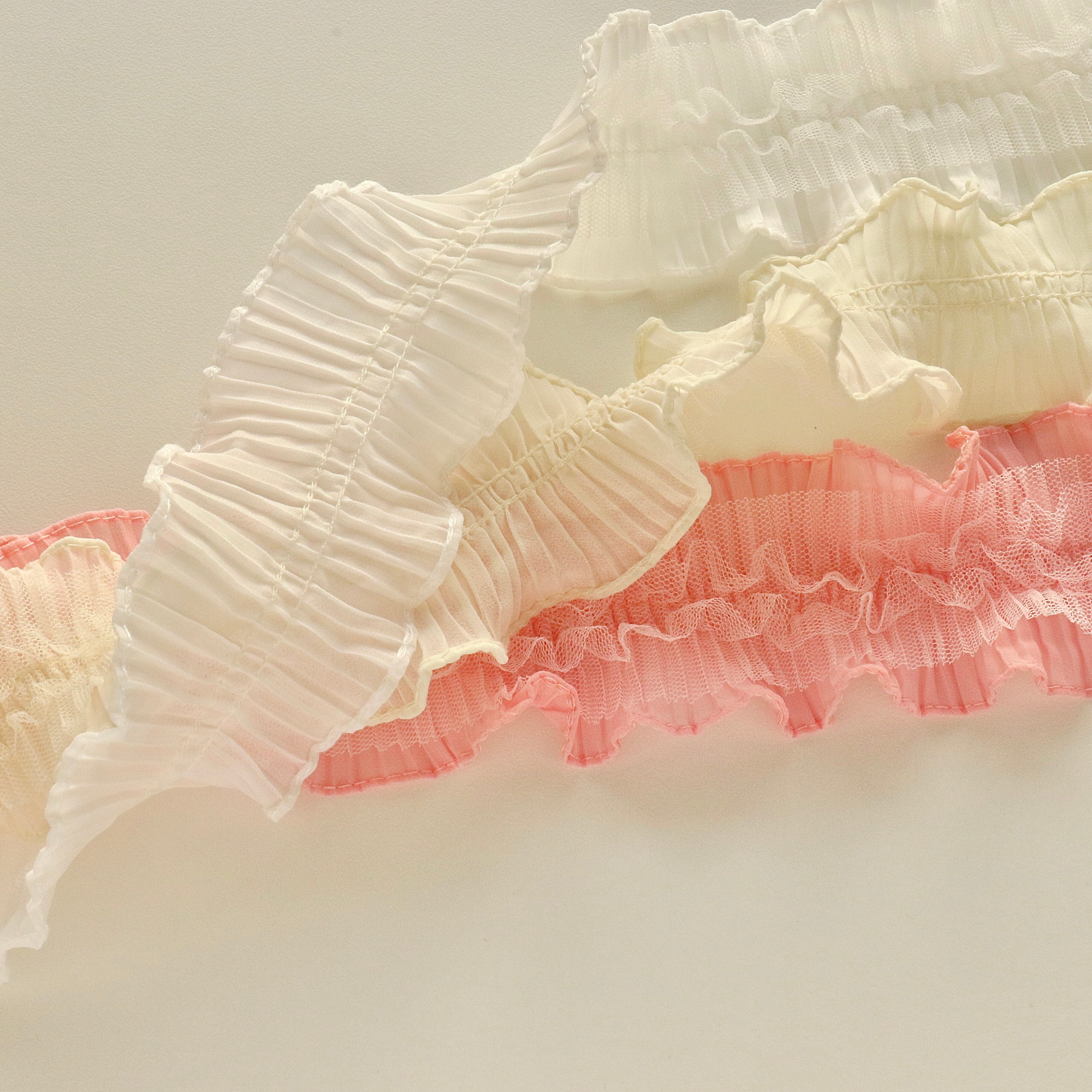 【レース】3色 ホワイト・アイボリー・ピンク ギャザーのチュールレース フリル (幅6.5cm/長さ1m〜)