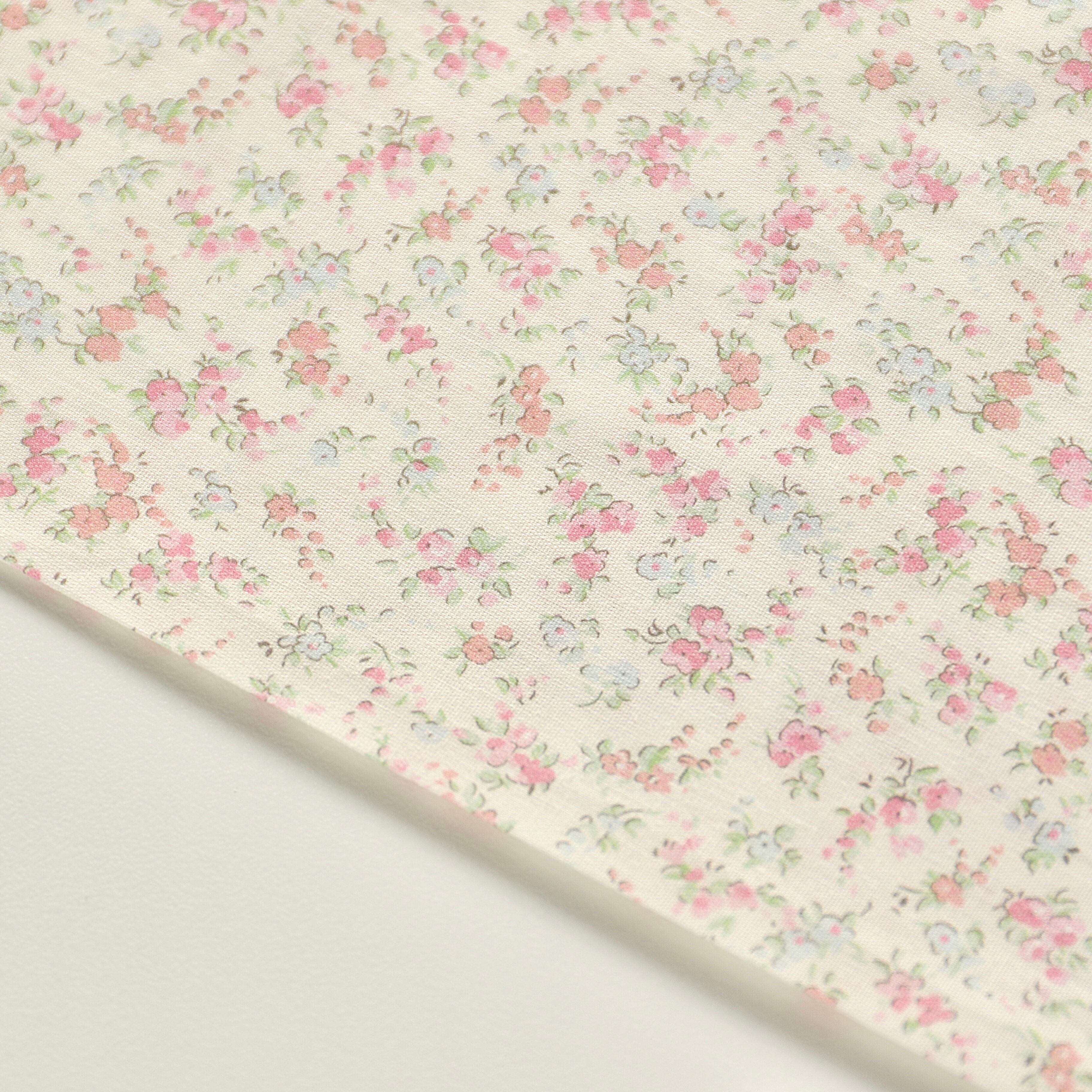 淡いピンクの小花が散りばめられた、優しい雰囲気のコットン生地です。