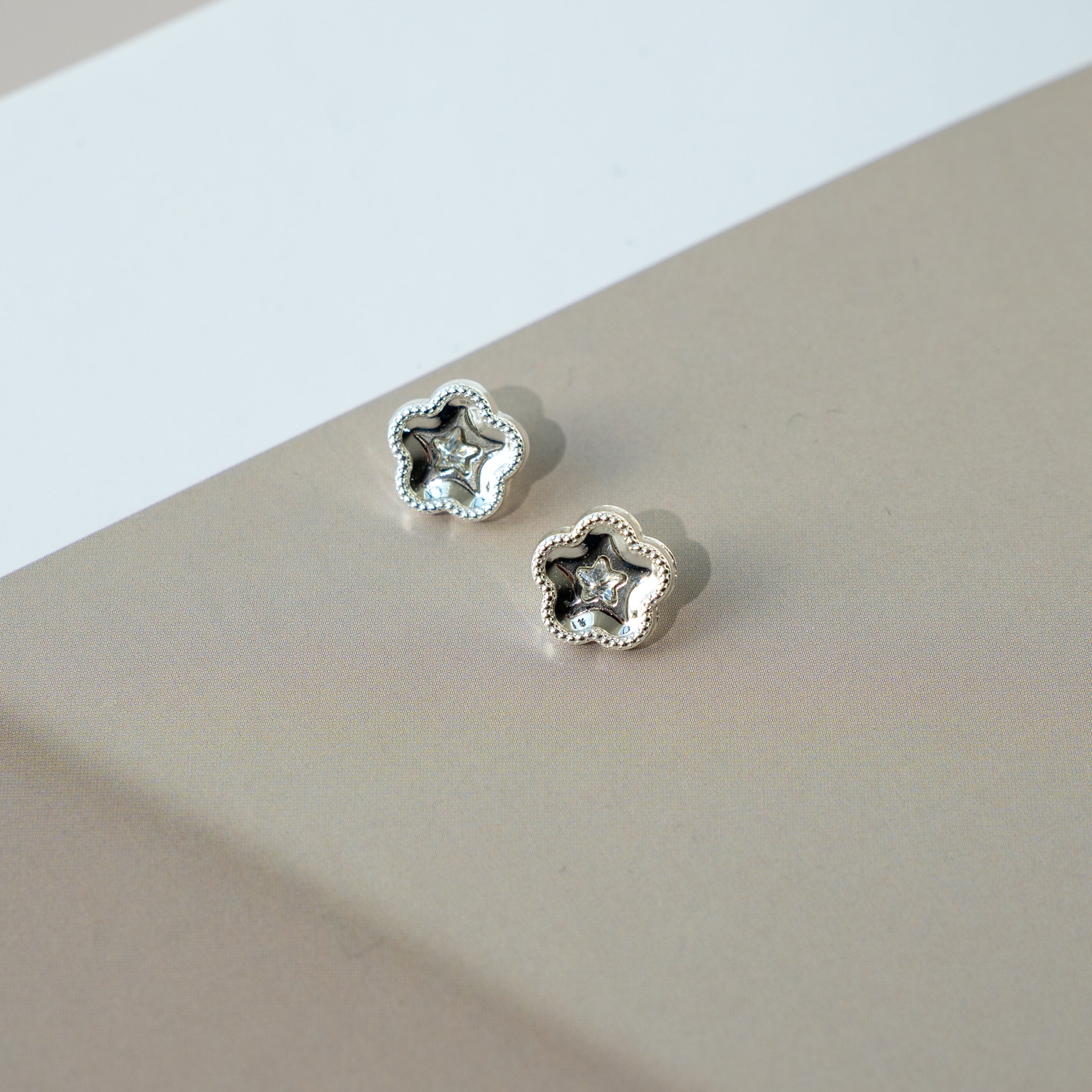 フラワーシルエットの中心に星がきらめく、洗練されたデザイン。