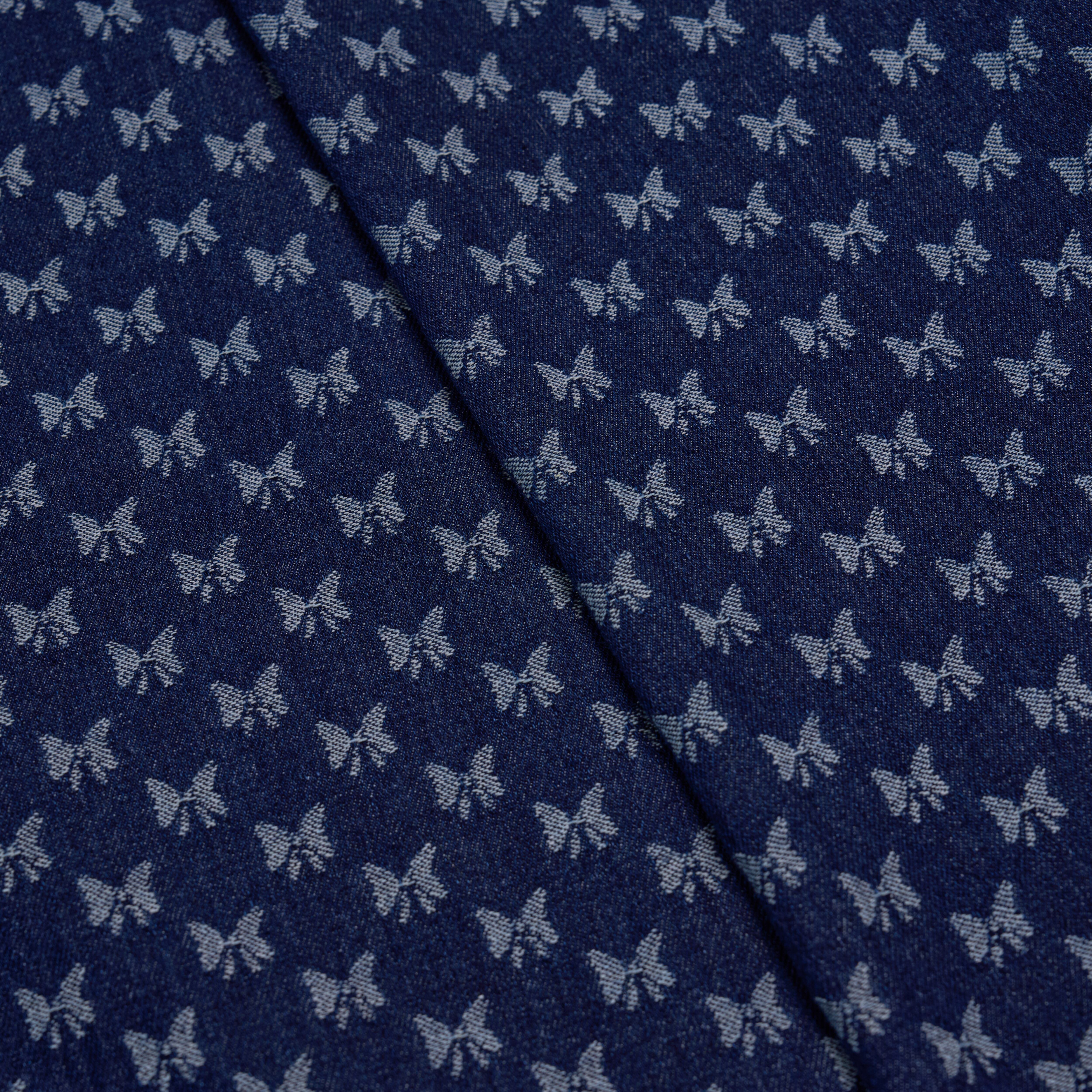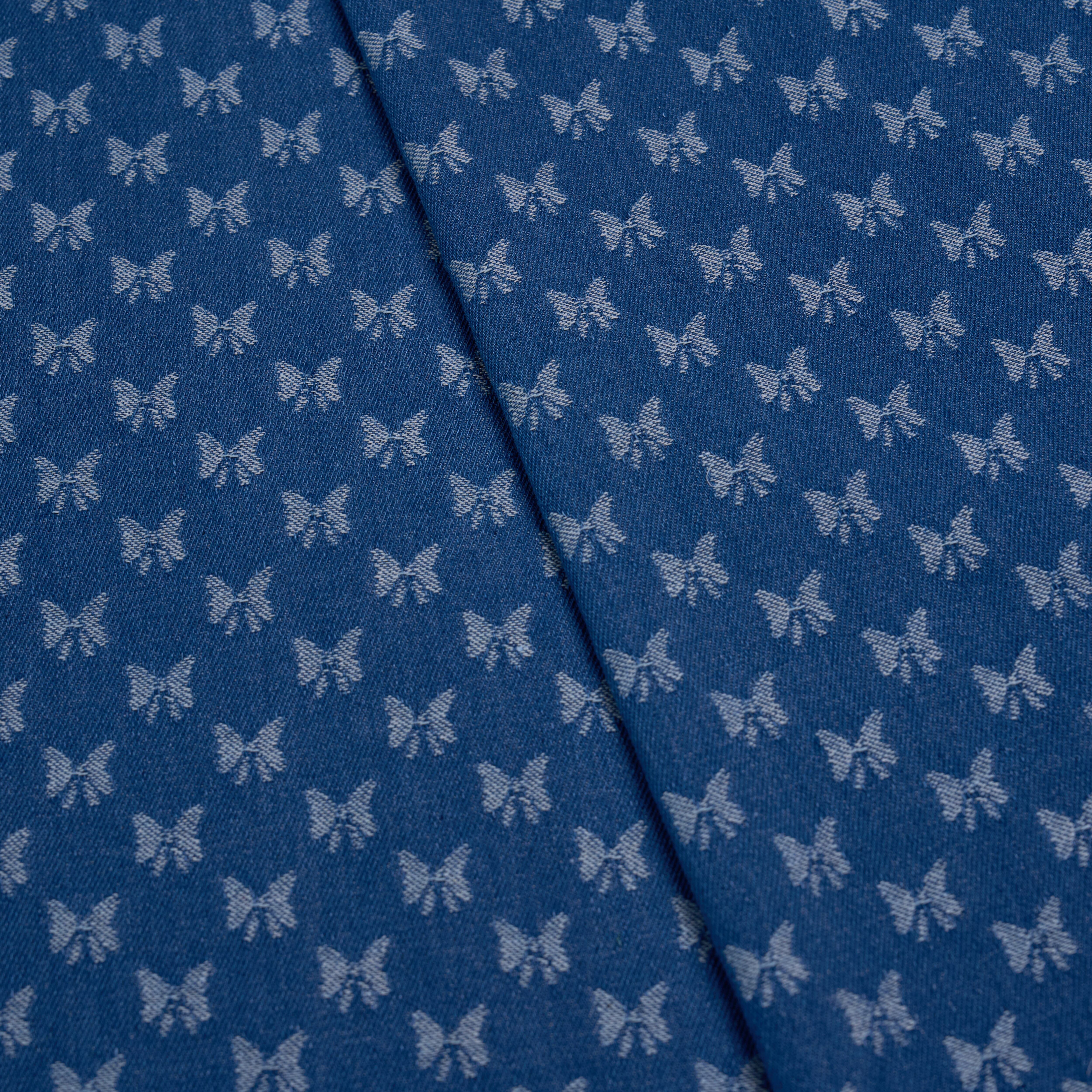 【生地】3カラー展開 ブルーデニムx立体感のある蝶リボン柄 厚手 韓国生地(幅160cm・長さ50cm単位)