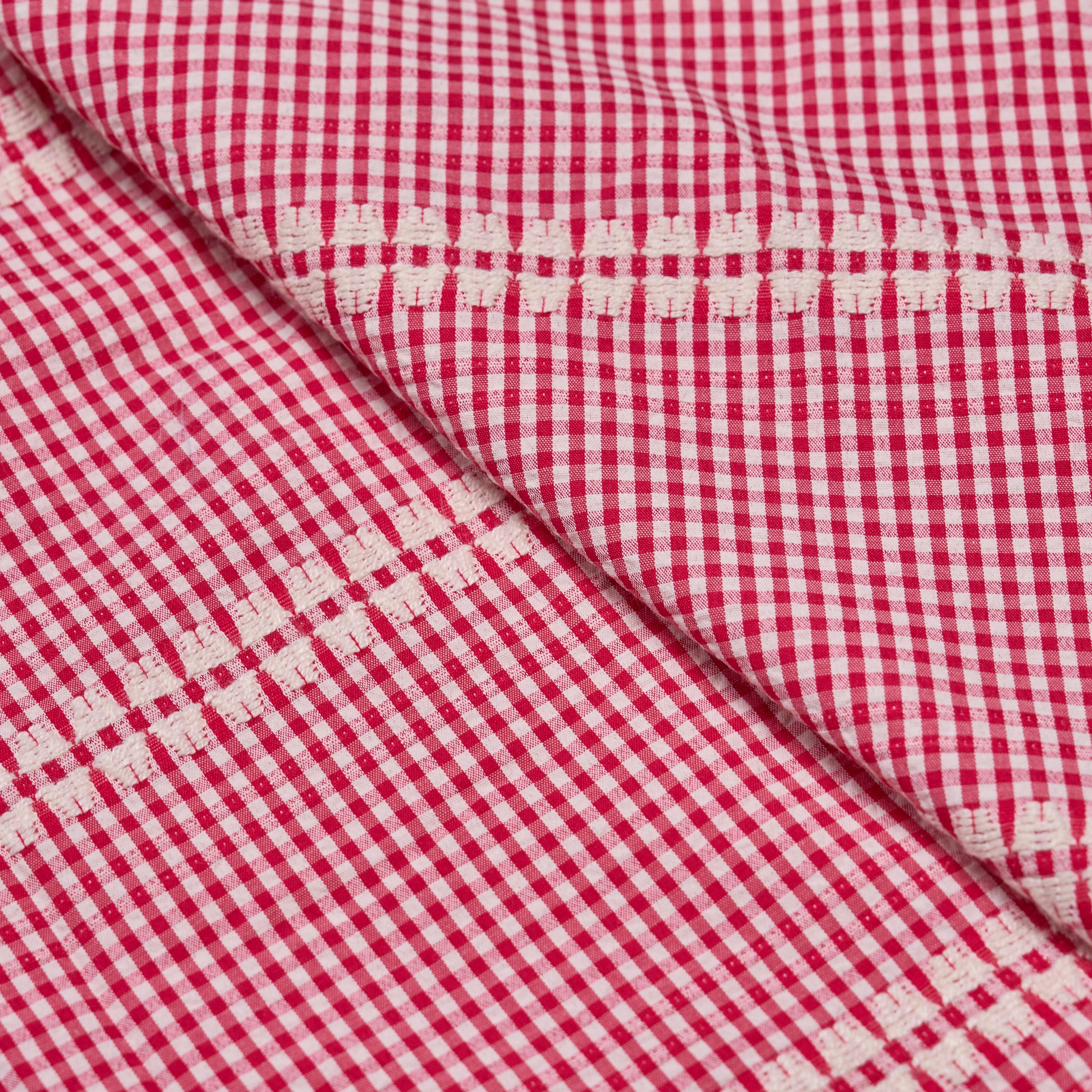 親しみのあるギンガムチェックに、繊細な織りラインがさりげなく入った生地。