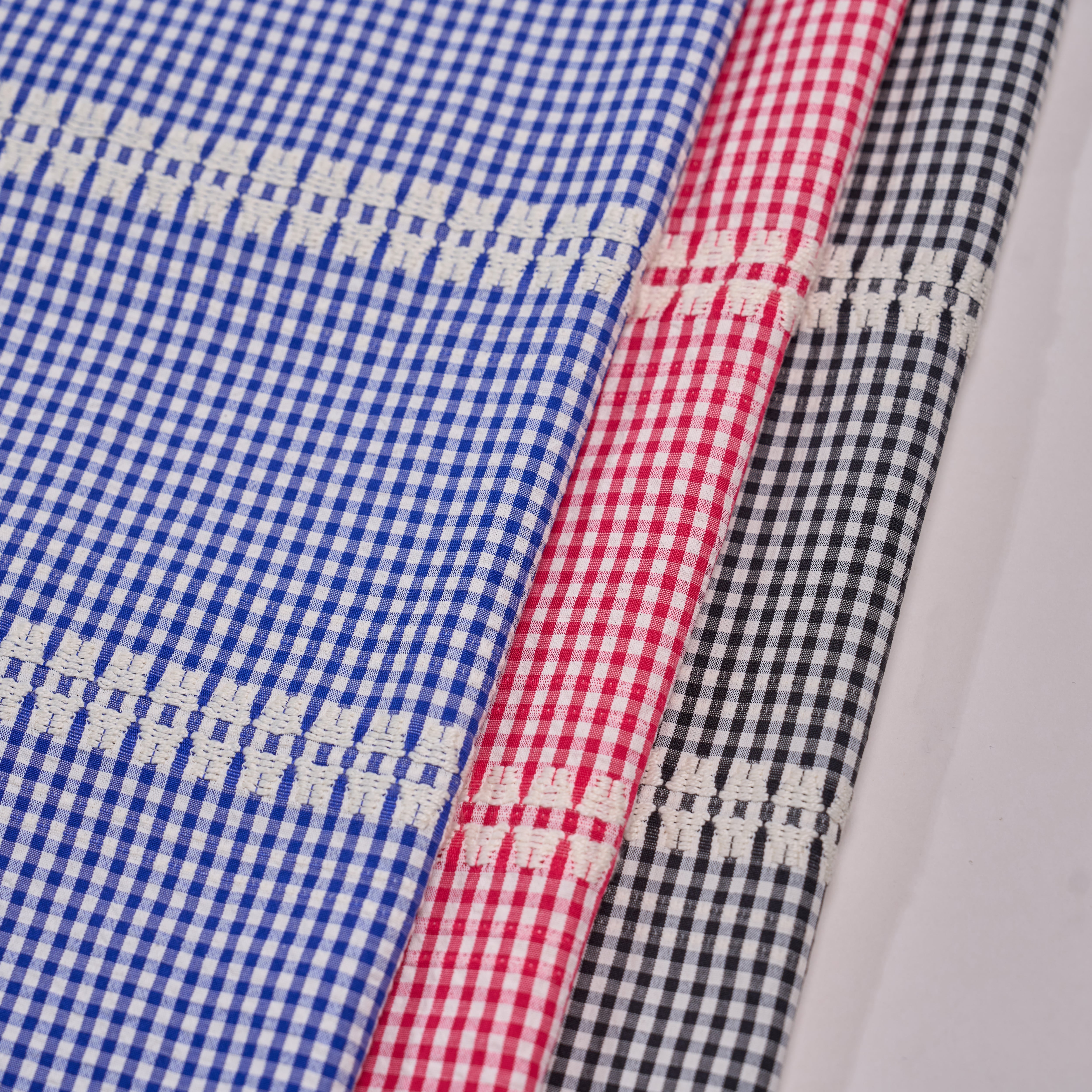【生地】3色展開 100%コットン ギンガムチェックx織りライン生地 (幅145cm・長さ50cm単位)