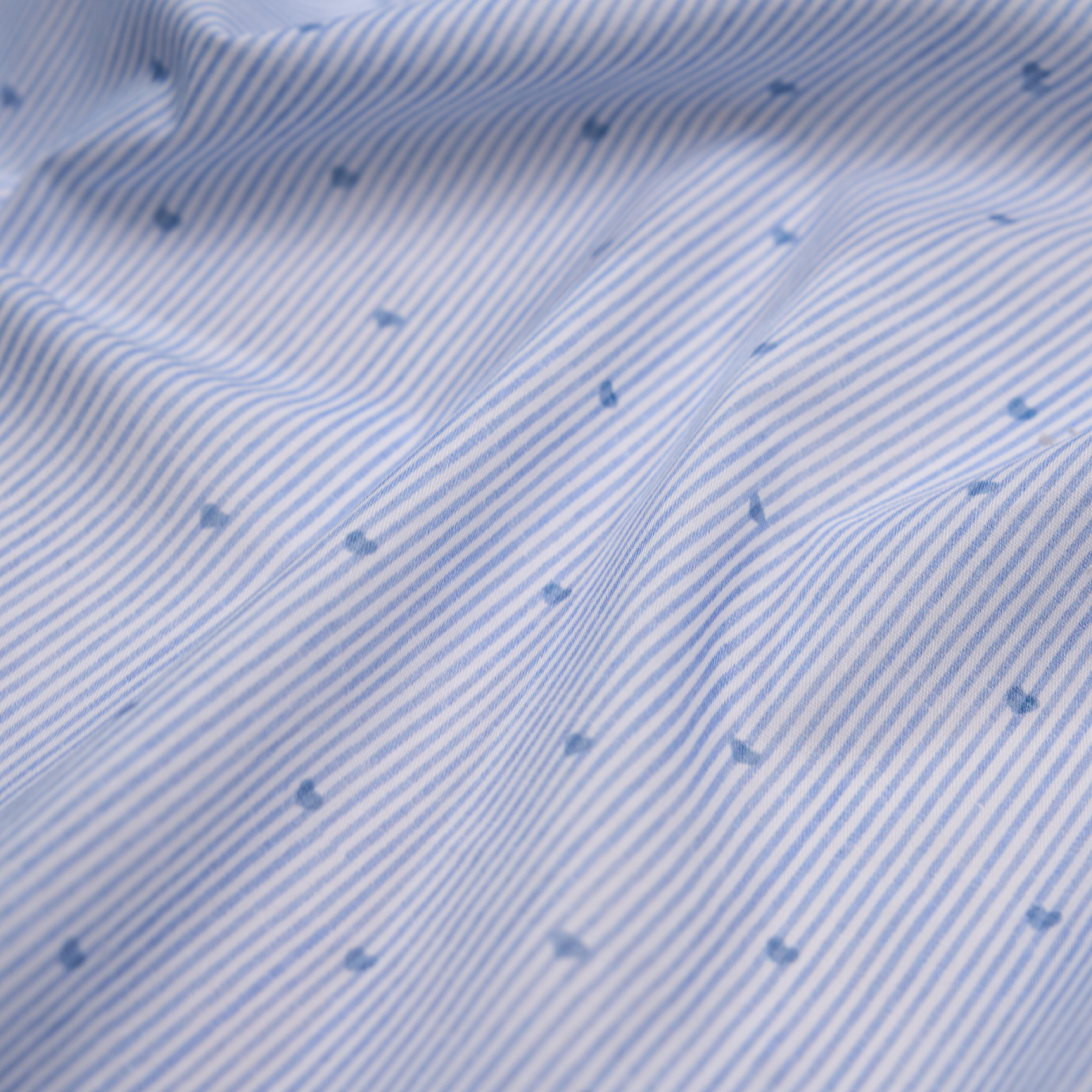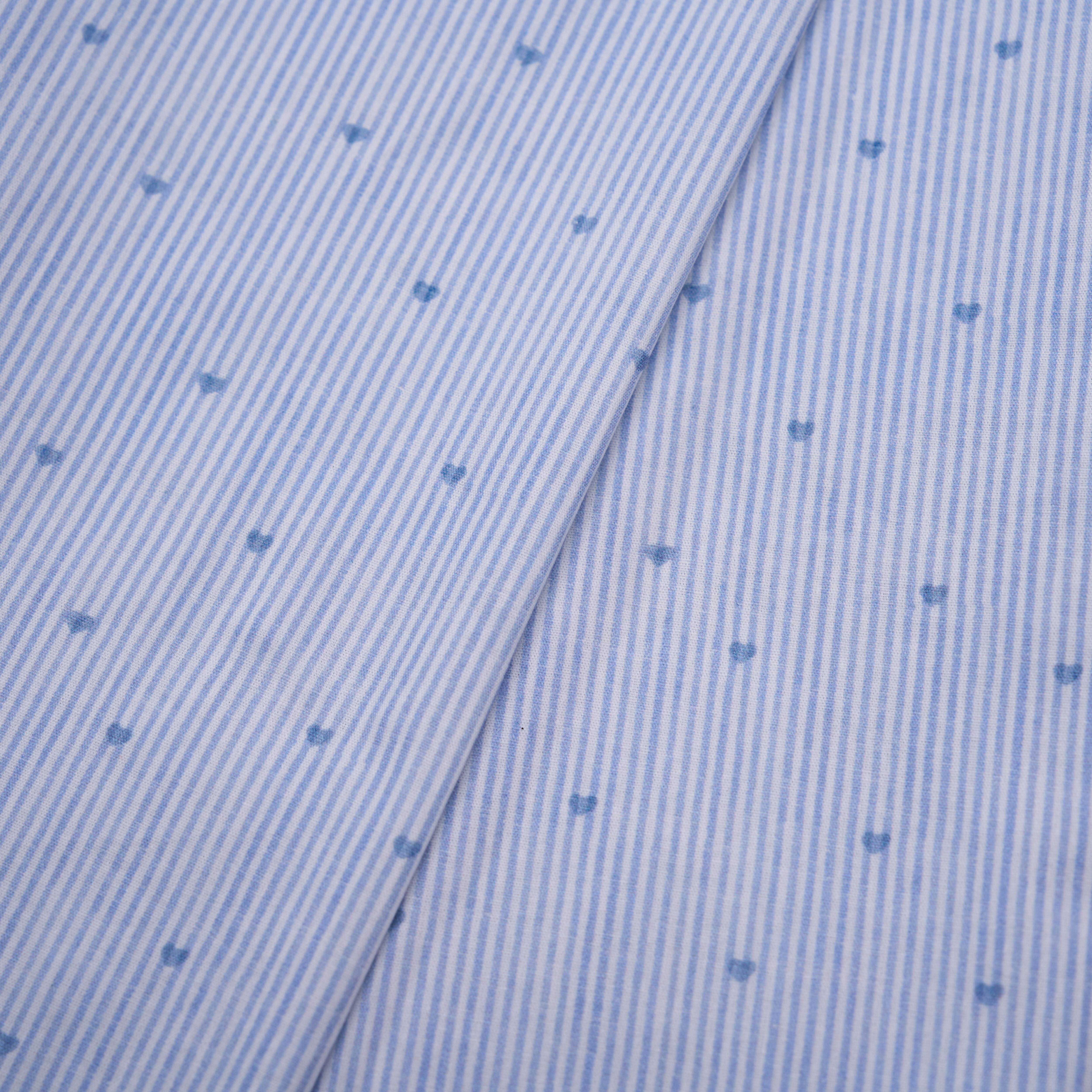 細やかなストライプの中に、さりげなく散りばめられた小さなハートが可愛らしい、100%コットン生地です。