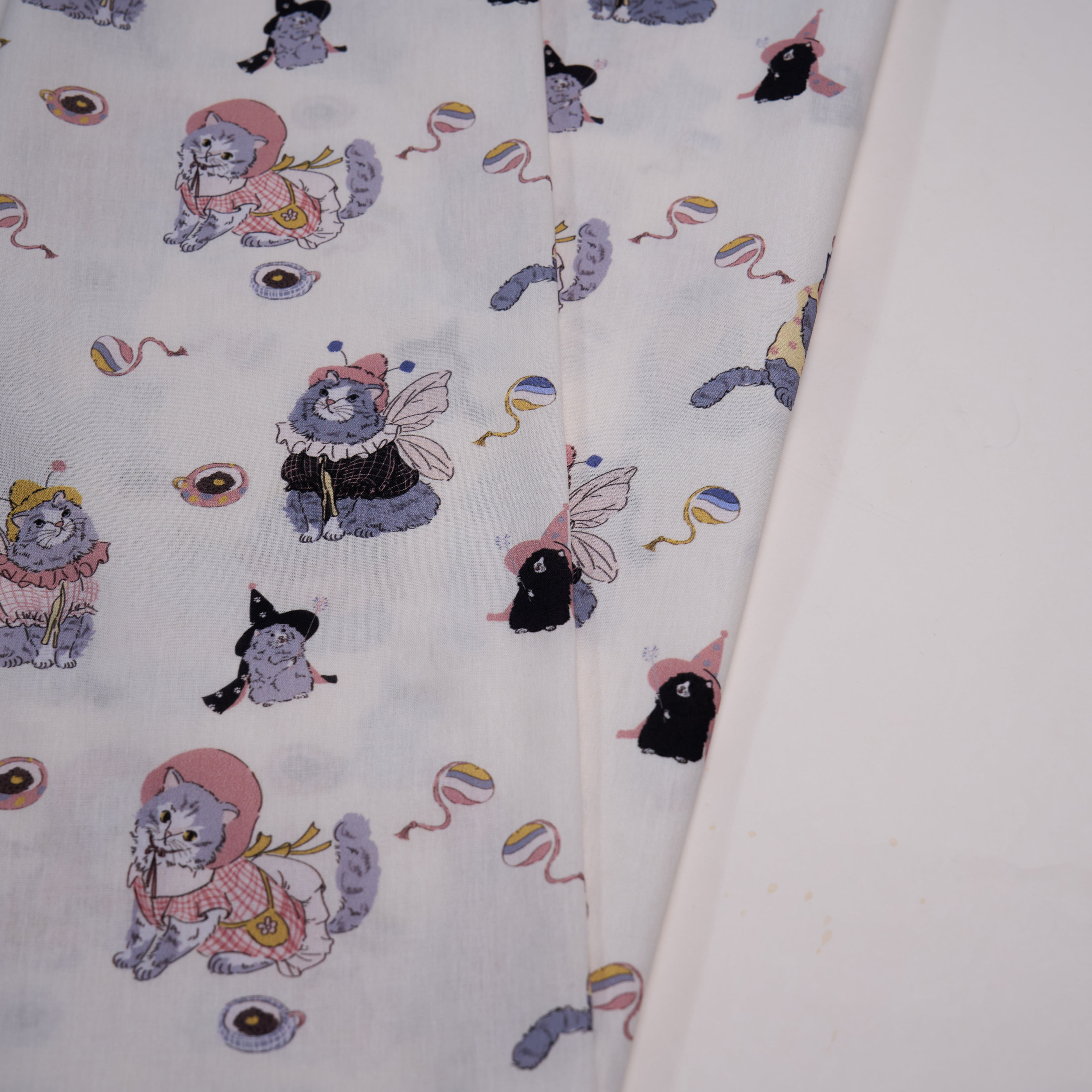 【生地】100%コットン ねこイラスト柄生地 パステルカラー ファンシー・可愛い系(幅148cm・長さ50cm単位)