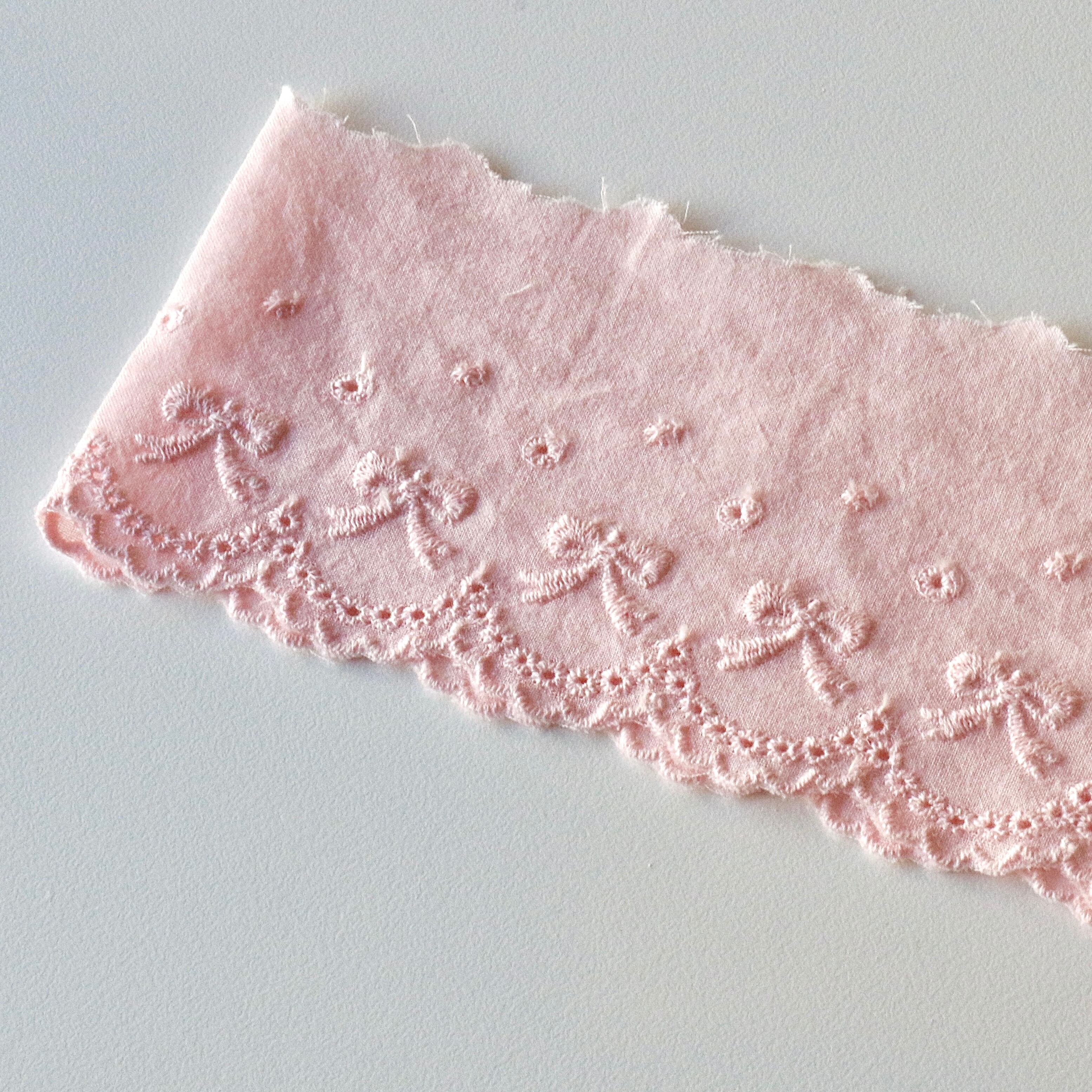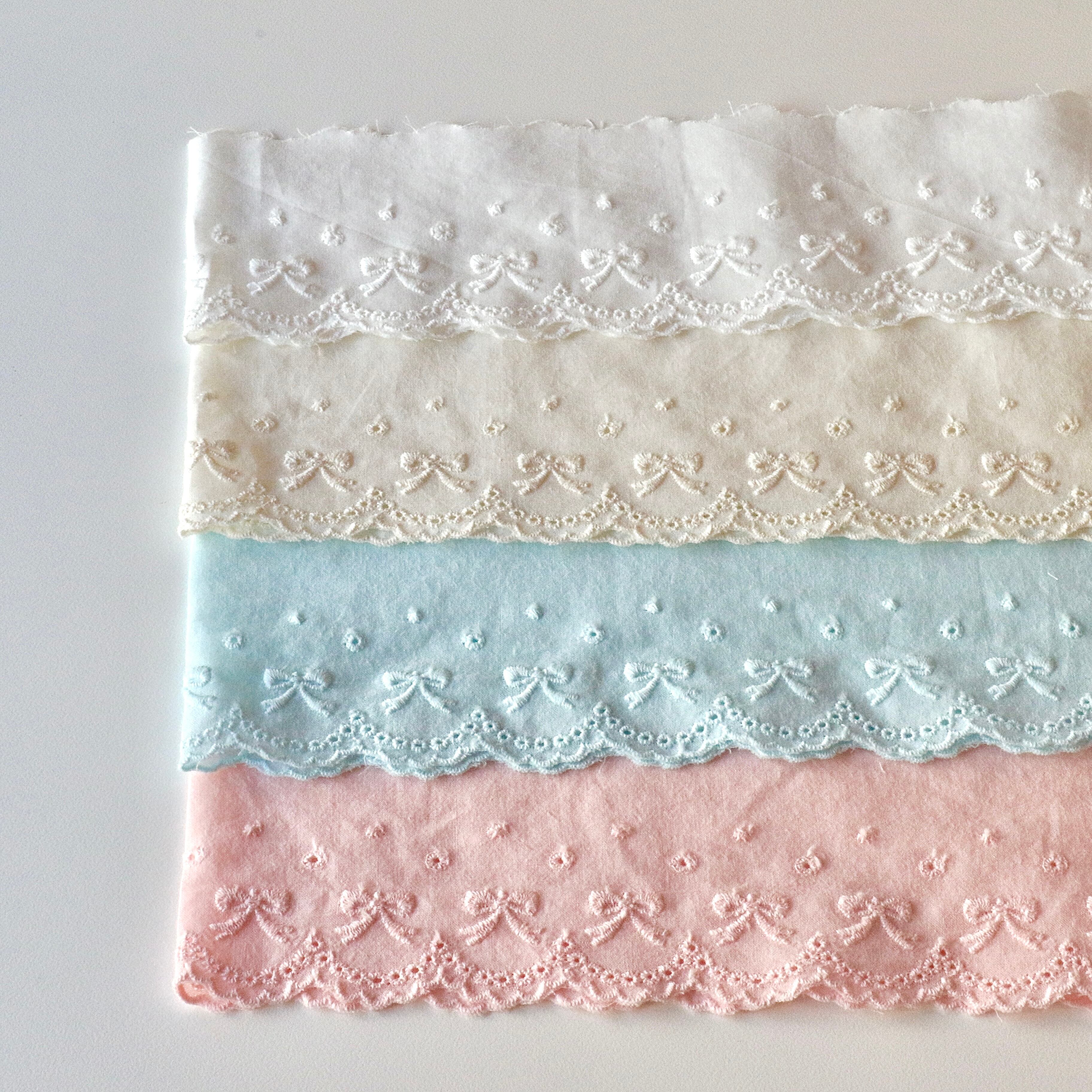 4回目再入荷しました!!【レース】4色 リボン コットン 刺繍綿レース (幅6cm/長さ1m〜)