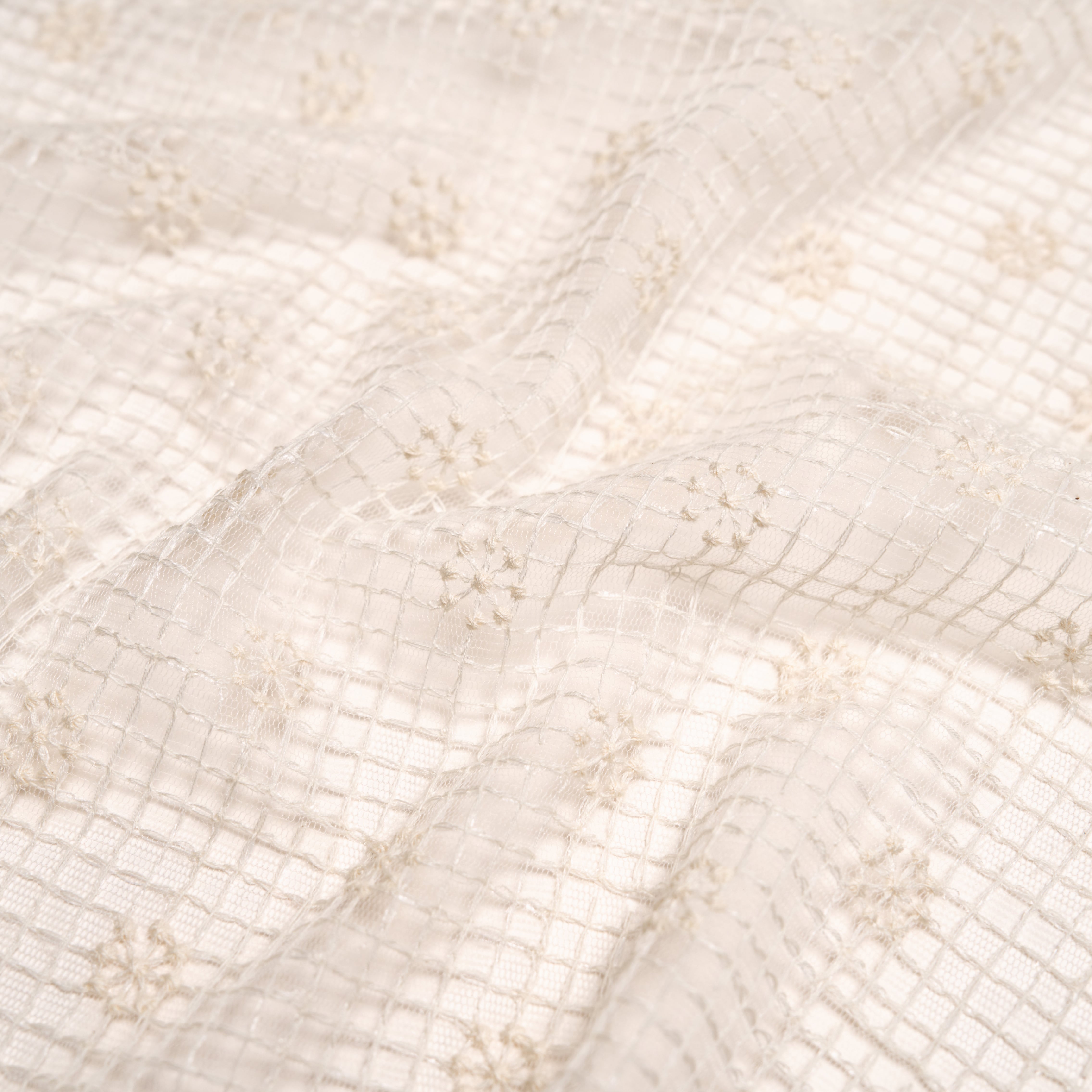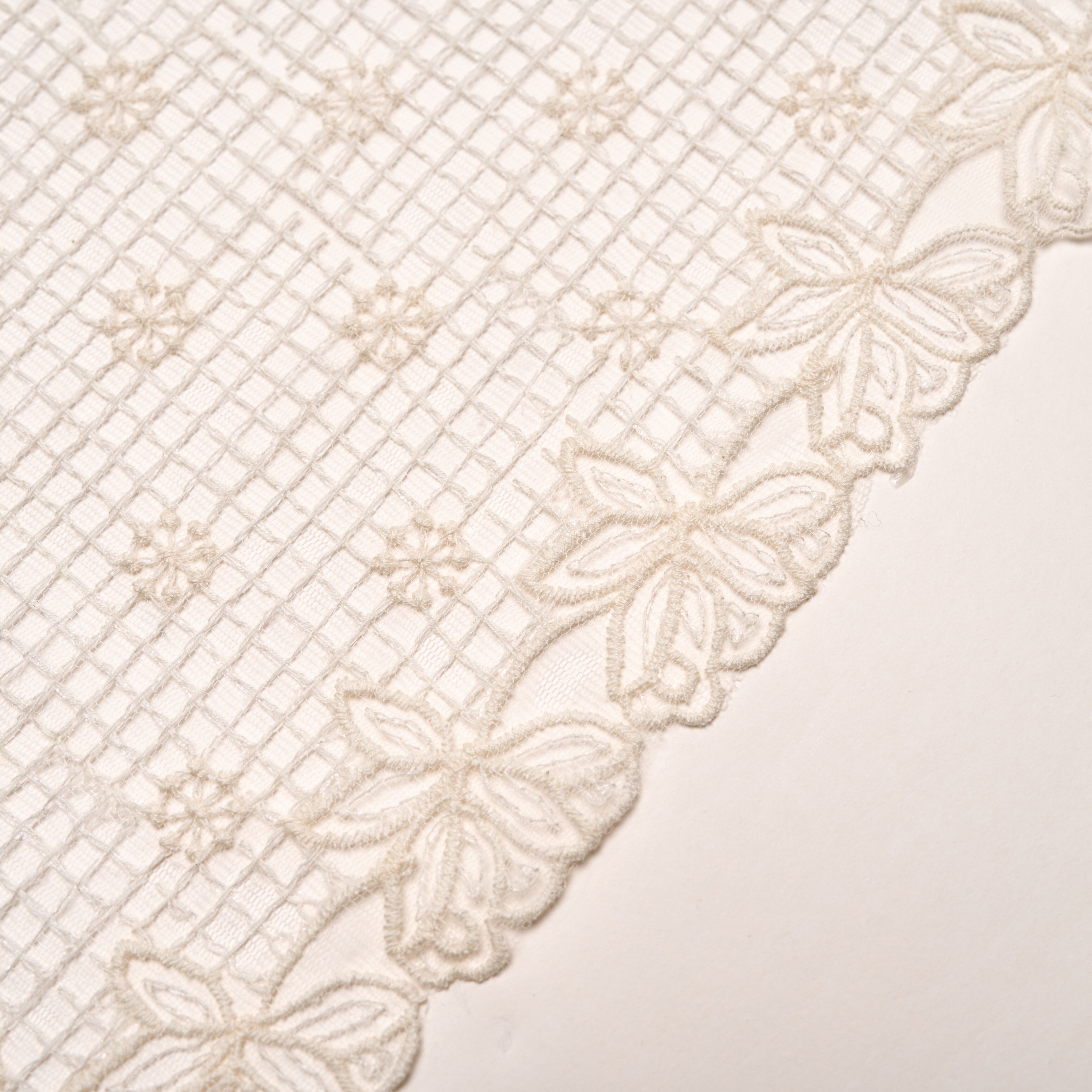 【生地】刺繍スカラップレース フラワー×バタフライ柄 アイボリー 韓国風(幅130cm・長さ50cm単位)